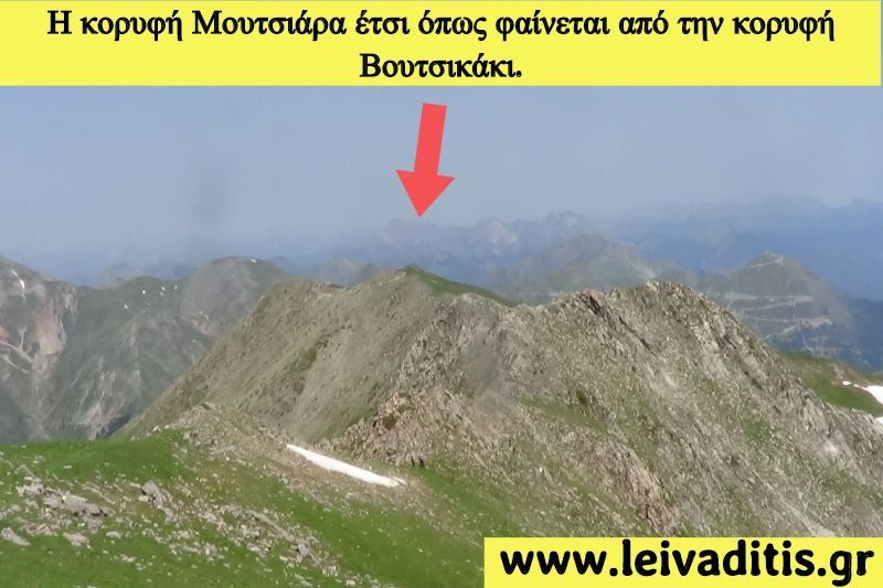 Επιτέλους λοιπόν, έχετε ξεκουραστεί και έχετε αναπληρώσει τις χαμένες σας δυνάμεις..και σκέφτεστε ότι τελικά θέλετε να συνεχίσετε ακόμη λίγο και να κάνετε και έναν μικρό γύρο πριν ξαναγυρίσετε στο πολύ ωραίο ορειβατικό καταφύγιο των Αγράφων Αυτό που σας προτείνουμε λοιπόν είναι μια ακόμη κορυφή πολύ κοντά στην κορυφή Βουτσικάκι η οποία ονομάζεται Μουτσιάρα με υψόμετρο 2.120 μέτρων. Η εικόνα που θα έχετε από την κορυφή Βουτσικάκι λοιπόν είναι η εξής (εικόνα 14)...