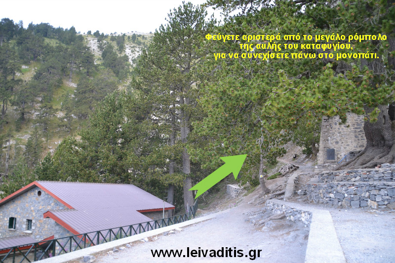 Μετά από ένα καλό πρωινό που θεωρείται και είναι απαραίτητο ξεκινάτε την σημερινή σας περιπέτεια από το μονοπάτι που ξεκινάει ακριβώς δίπλα από το μεγάλο ρόμπολο που υπάρχει στην αυλή του καταφυγίου (υψόμετρο 2.060 μ.) και είναι ακριβώς πίσω από τη βρύση (Εικόνα 1).