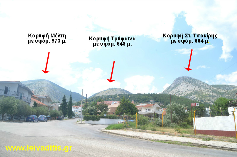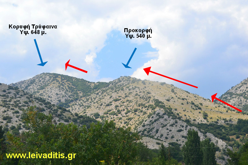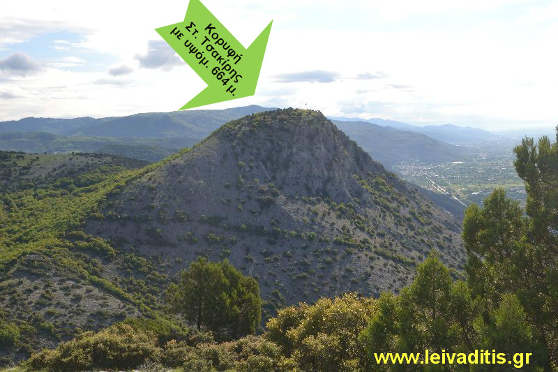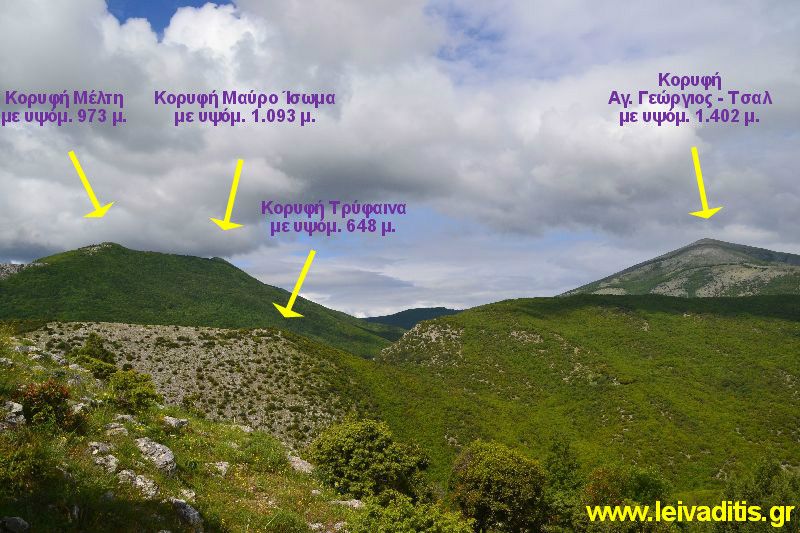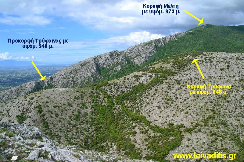 Κορυφές "Τρύφαινα" με υψόμ. 648 μ. και "Στ. Τσακίρης" με υψόμ. 664 μ.