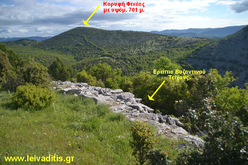 Κατά το τελικό στάδιο της ανάβασής σας, θα πρέπει να προσέξετε και να δώσετε ιδιαίτερη έμφαση στα ερείπια Βυζαντινού Τείχους που υπάρχει κατά την διάρκεια της διαδρομής και τα οποία θα χρειαστεί να περπατήσετε από πάνω τους για να συνεχίσετε την διαδρομή σας προς τον σημερινό σας στόχο καθώς και τις γειτονικές κορυφές όπως αυτή του Φινέα (Εικόνα 9)...