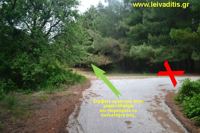 Συνεχίζετε άλλα 200 μέτρα μετά το Ψυχολογικό Κέντρο και συναντάτε χωματόδρομο στο αριστερό σας χέρι οπότε πρέπει να στρίψετε για να αφήσετε το αυτοκίνητό σας (Εικόνα 3)...