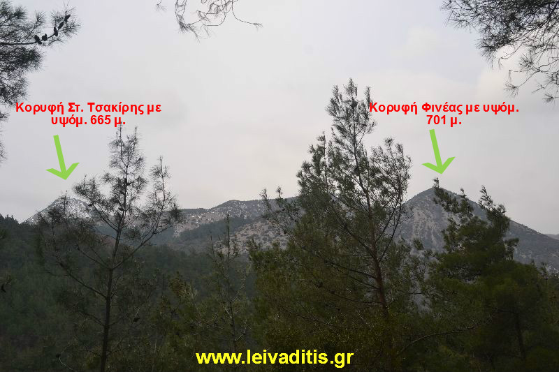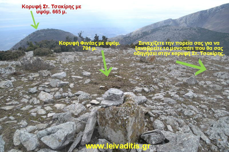 Από την κορυφή του Φινέα μέχρι αυτήν του Στ. Τσακίρη θα περπατήσετε περίπου 1 χιλιόμετρο και 900 μέτρα και 1 ώρα είναι αρκετή για να φτάσετε στον προορισμό σας. Ακολουθείτε πιστά τα σημάδια τα οποία θα σας περάσουν και από τα μεσαιωνικά τείχη και θα σας οδηγήσουν στην κορυφή του Στ. Τσακίρη γνωστή και ως Αβγό με υψόμετρο 665 μ. (Εικόνα 20)...
