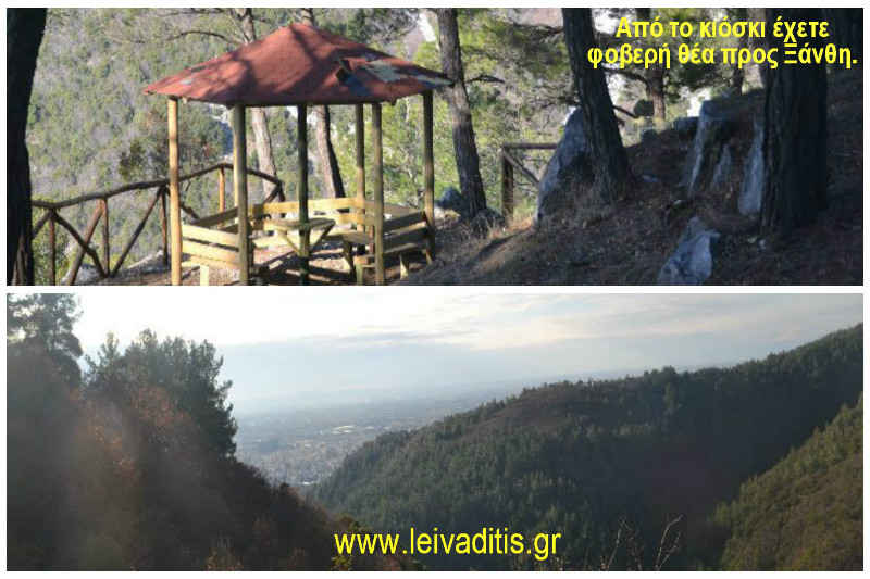 Μόλις περάσετε το καμπαναριό και αφού περατήσετε περίπου 50-60 μέτρα θα βρείτε κιόσκι σε ωραία θέση θέας προς την πόλη της Ξάνθης (Εικόνα 9).