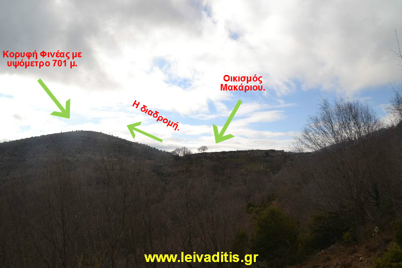 Από το σημείο αυτό και μετά ξεκινάει μια καλή "κόντρα". Μετά από 2 χιλιόμετρα και 700 μέτρα που θα χρειαστεί να τα κάνετε σε περίπου 1 ώρα και 15 λεπτά θα φτάσετε στον ορεινό οικισμό του "Μακάριου". Από το υψόμετρο των 115 μέτρων στο οποίο βρίσκεται η γέφυρα θα φτάσετε στα 635 υψόμετρο στο οποίο βρίσκεται το 'Μακάριο". Κατά την διάρκεια της πεζοπορίας σας στο μονοπάτι δεν θα έχετε αρκετή θέα κάτι το οποίο όμως δεν θα συμβαίνει όσο πλησιάζετε προς τον οικισμό (Εικόνα 14)...