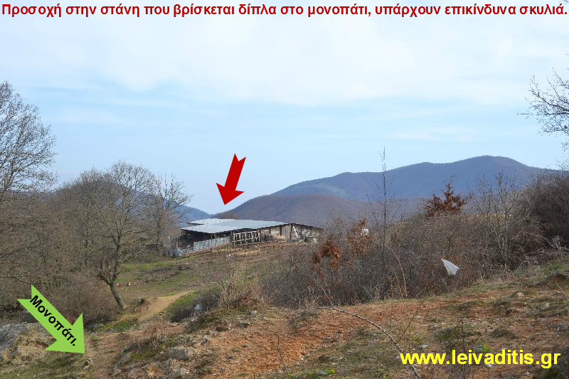 Για το επόμενο 1 χιλιόμετρο και 200 μέτρα το μονοπάτι ανεβαίνει ομαλά και σας δημιουργεί μια ευχάριστηση διάθεση, για περισσότερο περπάτημα. Κάπου όμως στα αριστερά σας θα συναντήσετε στάνη στην οποία ότι ώρα και να περάσετε υπάρχουν σκυλιά τα οποία θα σας γαυγίσουν. Μην δίνετε σημασία, συνεχίστε και όταν απομακρυνθείτε από την στάνη θα ηρεμήσουν κι αυτά (Εικόνα 6)...