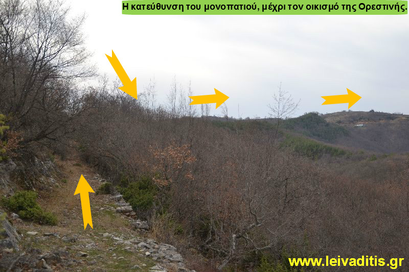 Ας κάνουμε λοιπόν μια επισκόπηση του τι έχετε περπατήσει μέχρι τώρα. Από το σημείο που αφήσατε τα αυτοκίνητά σας μέχρι και το σημείο που αφήνετε την άσφαλτο 2 χιλιόμετρα, σε 25 λεπτά. Από το σημείο που ξεκινάει το μονοπάτι μέχρι την στάνη 1 χιλιόμετρο και 200 μέτρα σε 20 λεπτά. Από την στάνη μέχρι την πρώτη επαφή με τον οικισμό της Ησαίας 1 χιλιόμετρο και 200 μέτρα σε 20 λεπτά και από εκεί μέχρι τον οικισμό της Ορεστινής 2 χιλιόμερα και 400 μέτρα σε 45 λεπτά. Συνολικά λοπόν 6 χιλιόμετρα και 800 μέτρα σε 1 ώρα και 50 λεπτά (Εικόνα 13)...