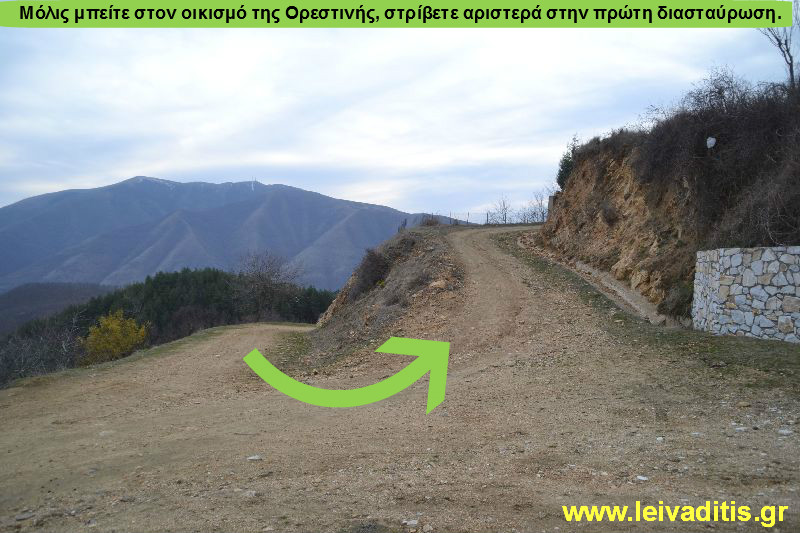 Μετά από 300 μέτρα περπατήματος πάνω στον αγροτικό δρόμο και ενώ έχετε περάσει και μια ποτίστρα με πόσιμο νερό, έχετε φτάσει τα πρώτα σπίτια του οικισμού της Ορεστινής σε υψόμετρο 600 μέτρων (Εικόνα 12)...
