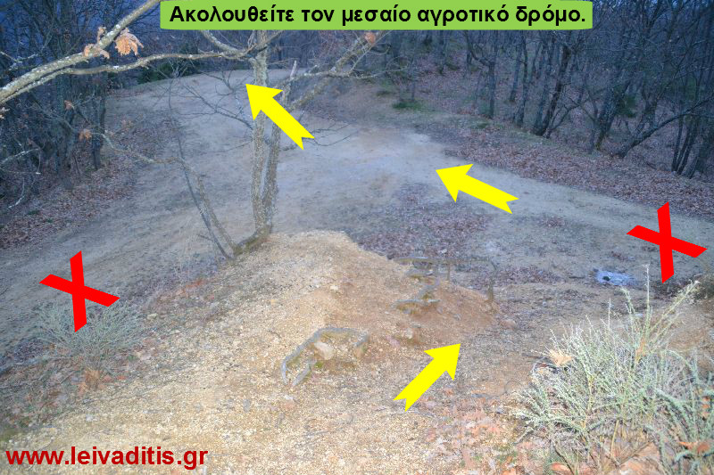 Όμως ο προορισμός σας είναι ο οικισμός του Λυκοδρομίου, οπότε συνεχίζετε. Με το που φτάνετε στα πρώτα σπίτια θα δείτε ότι υπάρχει διασταύρωση με δρόμο αγροτικό ο οποίος φεύγει αριστερά και ανηφορίζει (Εικόνα 14)...