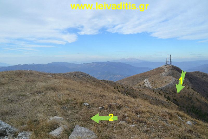 Καλό θα είναι καθόλη τη διάρκεια της διαδρομής να έχετε την διαδρομή αποθηκευμένη σε gps διότι από δω και πάνω και ανάλογα με την εποχή που θέλετε να κάνετε αυτήν εδώ την διαδρομή, υπάρχει μεγάλη περίπτωση να σας περικυκλώσει ομίχλη και να "χάσετε τα αυγά και τα πασχάλια" που λέει και ο λαός μας και να μην μπορέσετε ούτε καν να επιστρέψετε από το ίδιο μονοπάτι. Από τη κορυφή της "Γαλήνης" λοιπόν μέχρι που να φτάσετε στις κεραίες σε υψόμετρο 1.360 μέτρων, θα περπατήσετε άλλο 1 χιλιόμετρο και 700 μέτρα σε 55 περίπου λεπτά. Αν είναι καθαρή η ατμόσφαιρα βάζετε στόχο τις κεραίες και ανεβαίνετε, αν έχει ομίχλη υπάρχουν μονοπατάκια μικρά που θα σας οδηγήσουν απευθείας στον στόχο σας. Πιστέψτε μας, δεν υπάρχει περίπτωση να σας βγάλουν κάπου αλλού.