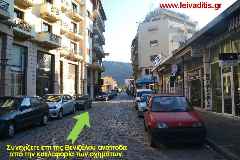 Πάνω στην Μ. Βόγδου περπατάτε περίπου 200 μέτρα και φτάνετε σε φανάρι, το οποίο βέβαια τώρα δεν λειτουργεί αλλά είναι αρκετό για να σας θυμίσει ότι πρέπει να στρίψετε δεξιά στην Βενιζέλου και να ακολουθήσετε πορεία ανάποδη με αυτή των αυτοκινήτων.