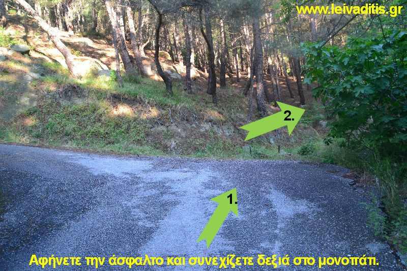 Αρχίζετε να ανεβαίνετε την ανηφοριά πηγαίνοντας παράλληλα με το συρματόπλεγμα και αφού περάσετε ένα συγκρότημα κτηρίων που αποτελούν το 3ο Λύκειο Ξάνθης φτάνετε σε σημείο στο οποίο η άσφαλτος συνεχίζει αριστερά σας κάνοντας στροφή, ενώ δεξιά σας βλέπετε να ξεκινάει μονοπάτι. Βουνίσιοι δεν δηλώνετε? Ακολουθήστε το λοιπόν. Έχετε περπατήσει άλλα 370 μέτρα.