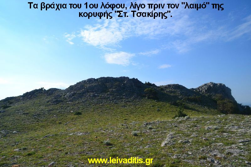 Έχετε περπατήσει άλλα 750 μέτρα, σε 15 λεπτά και βρίσκεστε στο ανώτερο σημείο του 1ου λόφου, σε υψόμετρο 430 μέτρων το οποίο σας το υποδεικνύουν μια σειρά από βράχια.
