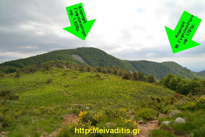 Το τέλος αυτής της ανηφόρας θα σας οδηγήσει στην πιο ψηλή και χαρακτηριστική κορυφή του Νομού μας, το "Γυφτόκαστρο" με υψόμετρο 1.828 μέτρα.