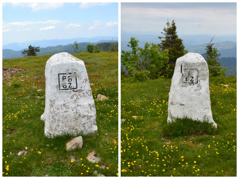 Από την διασταύρωση και μετά συνεχίζετε πάνω σε ευδιάκριτο μονοπάτι για άλλο 1 χιλιόμετρο και 820 μέτρα περπατάτε δηλαδή άλλα 25 λεπτά και θα αρχίσετε να πλησιάζετε στα σύνορα με την Βουλγαρία. Αυτό θα το καταλάβετε από τις λεγόμενες πυραμίδες που παλιά ήταν το διακριτικό των συνόρων και των δύο χωρών. Οι πυραμίδες υπάρχουν ακόμη, και την πρώτη θα την συναντήσετε μέσα σε δασομένο μονοπάτι. Μόνο που θα πρέπει να προσέξετε γιατί θα πρέπει να βγείτε κάποια στιγμή από το κεντρικό μονοπάτι και να πάτε δεξιά πάνω σε μικρό δασάκι. Ένα μικρό δέντρο μόνο του, πάνω στο μονοπάτι θα σας υποδείξει πότε θα πρέπει να στρίψετε και όταν το κάνετε αυτό, στο βάθος θα δείτε την ύπαρξη κόκκινων σημαδιών τα οποία θα σας υποδείξουν πως συνεχίζει το μονοπάτι.