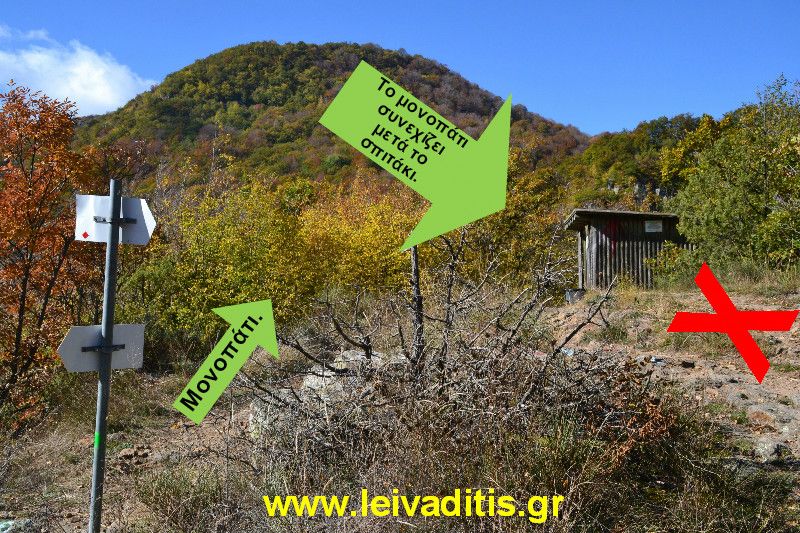 Το δεύτερο σημείο είναι αφού περάσετε το γεφυράκι και φτάσετε στον σιδερένιο πάσαλο, να μην φύγετε ευθεία αλλά να στρίψετε αριστερά για να ακολουθήσετε το μονοπάτι Ε6 το οποίο θα σας επιστρέψει στην βάση σας που δεν είναι άλλη, από τον οικισμό του Λειβαδίτη.