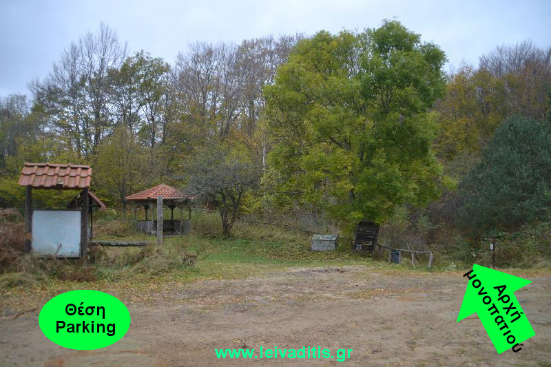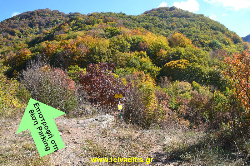 Από τη παλιά ταβέρνα του "Καππαδόκα" (που τώρα δυστυχώς είναι κλειστή) συνεχίζετε με το αυτοκίνητό σας στο δρόμο που οδηγεί στο δασικό χωριό Ερυμάνθου. Στα 4 χιλιόμετρα και 800 μέτρα από το μαγαζί, συναντάτε στο αριστερό σας χέρι, διασταύρωση με δασικό δρόμο και ένα ξύλινο σπιτάκι στην άκρη του (υψόμετρο 1.180 μέτρα). Αν δείτε ότι ο δρόμος είναι καλός (δεν έχει χιόνια και λάσπη δηλαδή), τότε συνεχίζετε με το αυτοκίνητό σας… Σε διαφορετική περίπτωση μπορείτε να το αφήσετε στη διασταύρωση σε σημείο που να μην ενοχλεί τη διέλευση άλλων αυτοκινήτων και να συνεχίσετε με τα πόδια (μόνο στην περίπτωση που έχετε 4Χ4, συνεχίστε άφοβα προς τα μέσα).