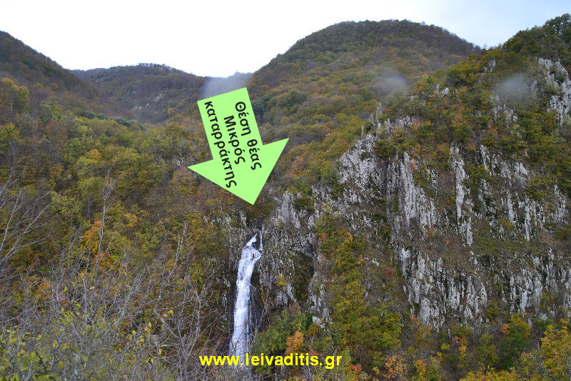 Από κει μπορείτε να θαυμάσετε έναν μικρότερο καταρράκτη, το νερό του οποίου έρχεται από τα "ρέματα" του Λειβαδίτη και λίγο πιο πέρα από κει που "σκάει" συναντιέται με τα νερά από τα "ρέματα" του "Στραβορέματος", σχηματίζοντας έτσι το εντυπωσιακό θέαμα που δίνει ο μεγάλος καταρράκτης. Επίσης από πίσω σας, φαίνονται κορυφές από βουνά που ανήκουν στο Ν. Δράμας.