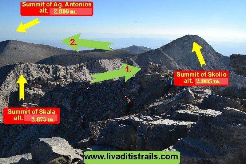 You will have to walk 800 meters more in half an hour and 70 meters altitudinal to reach “Skolio”, the third highest summit in our country, at an altitude of 2.905 meters (Image 11)…