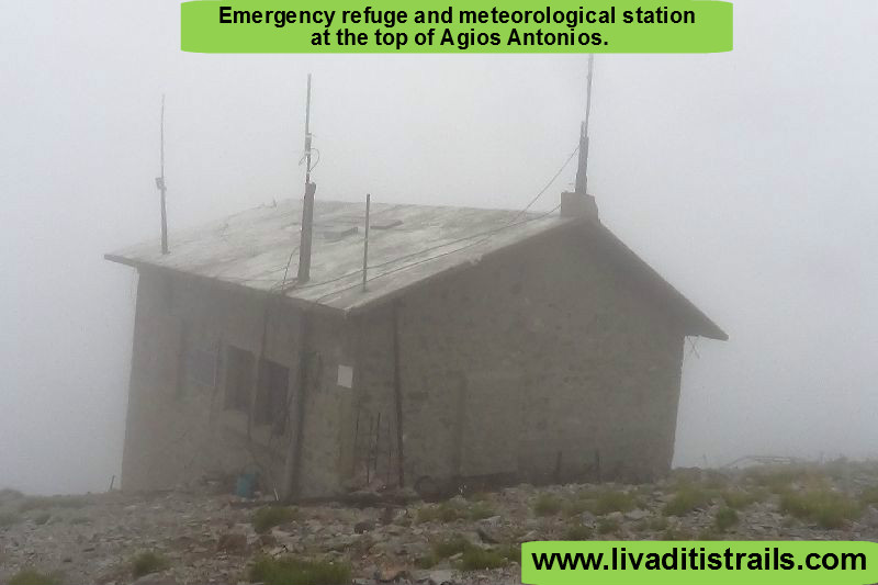 Just for your information: at Ag. Antonios summit, there is a building used as a meteorological station, but most importantly as an emergency refuge. When you enter and go up the stairs, where used to be the main door, you will find all the necessary items you will ness in case of an unexpected weather change (Image 16)…