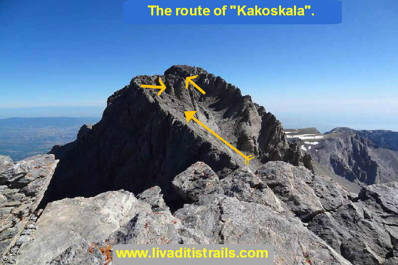 To better explain the picture above we must make a radio description…Are you ready? Let’s begin…Left from the summit of “Skala”, you enter a small shaft for about 20 meters, which leads to the hillside right below the ridge of “Skala”. Following carefully the signs on rocks, you descend for about 70 meters of altitude, where the path evens out and takes you to the bottom of a big hillside. You will have to ascend this hillside (90 meters of altitude). Reaching its end, you must move right to arrive at “Paramytika”. From “Paramytika” you descend a few meters and continue left right below the summit, where you have to cross 20 more meters of altitude to arrive (Image 10)…