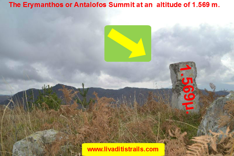 The end of this slope leads you to the Erymanthos Summit (known as the Antalofos Summit) at an altitude of 1,569 m., after15 minutes and 45 meters height and 200 meters mileage (Picture 8).