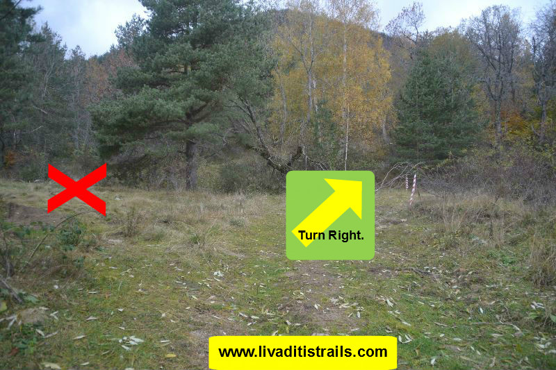 You can have in your mind the path as follows: At the first 10 minutes you go through the first 310 meters and from the first sign the path goes straight ahead and uphill. Once you cross a small opening (like a small valley), you will pass some big and tall pines and you turn right and continue for another 5 minutes in the same direction, covering 110 meters and thus reaching the base of a slope, at an altitude of 1,520 meters (Picture 7).
