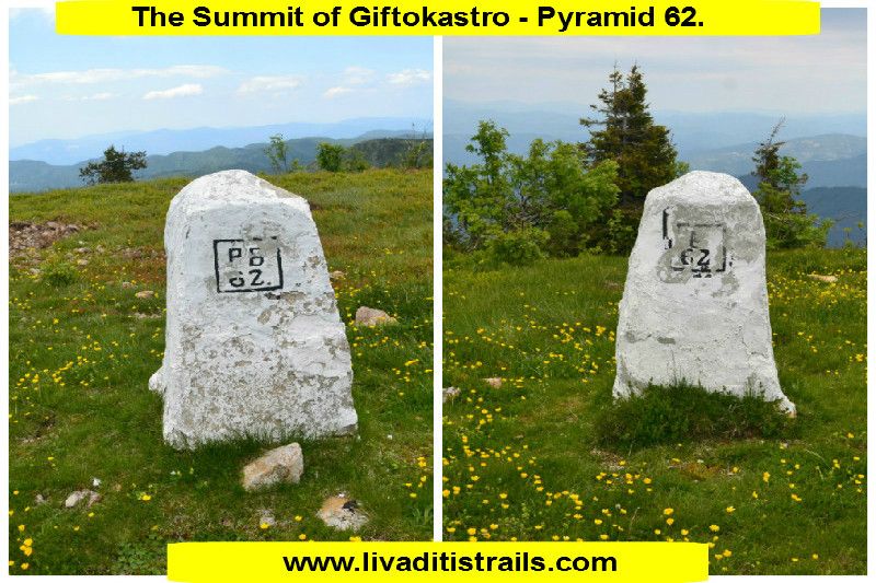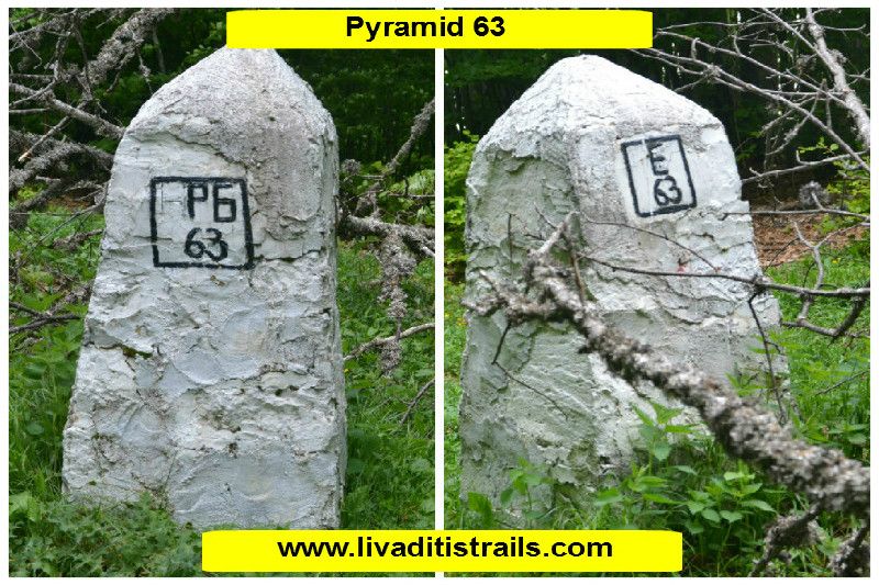 After walking a couple of minutes in the small forest and you will arrive at the first pyramid with the number 63 on it. The numbering and the characteristics of the two countries are obvious on this particular pyramid, indicating the side of our country, GREECE and the side of Bulgaria. You have now reached an altitude of 1.715 meters (Picture 12).