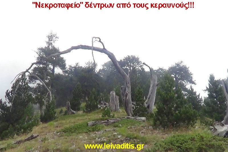 Ακολουθείτε το μονοπάτι το οποίο στην αρχή είναι δασωμένο και με μικρή κλίση...έτσι έχετε την ευκαιρία να θαυμάσετε τα κατορθώματα της Φύσης όταν δεν είναι στα καλά της...περνάτε από περιοχή που έχει καμμένους κορμούς δέντρων από τους κεραυνούς, κάτι σαν νεκροταφείο δέντρων δηλαδή (Εικόνα 3)...
